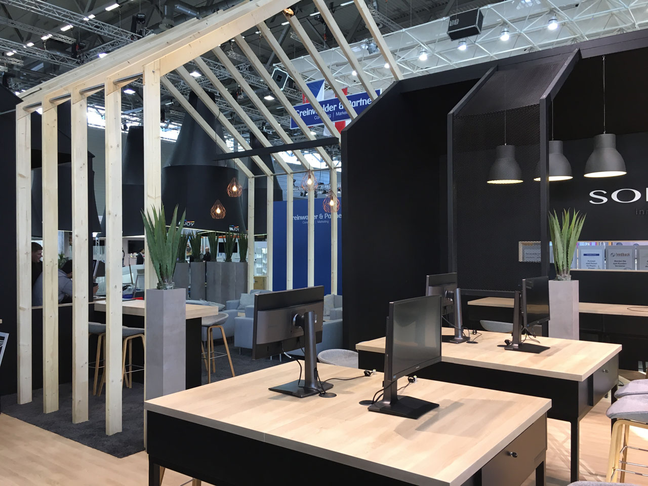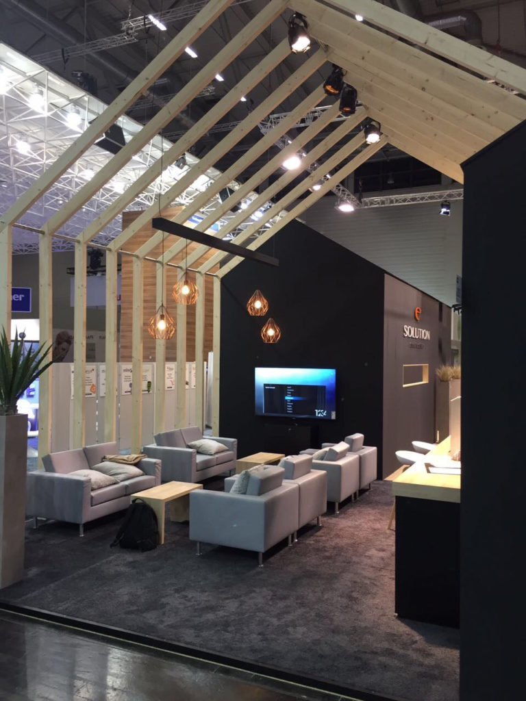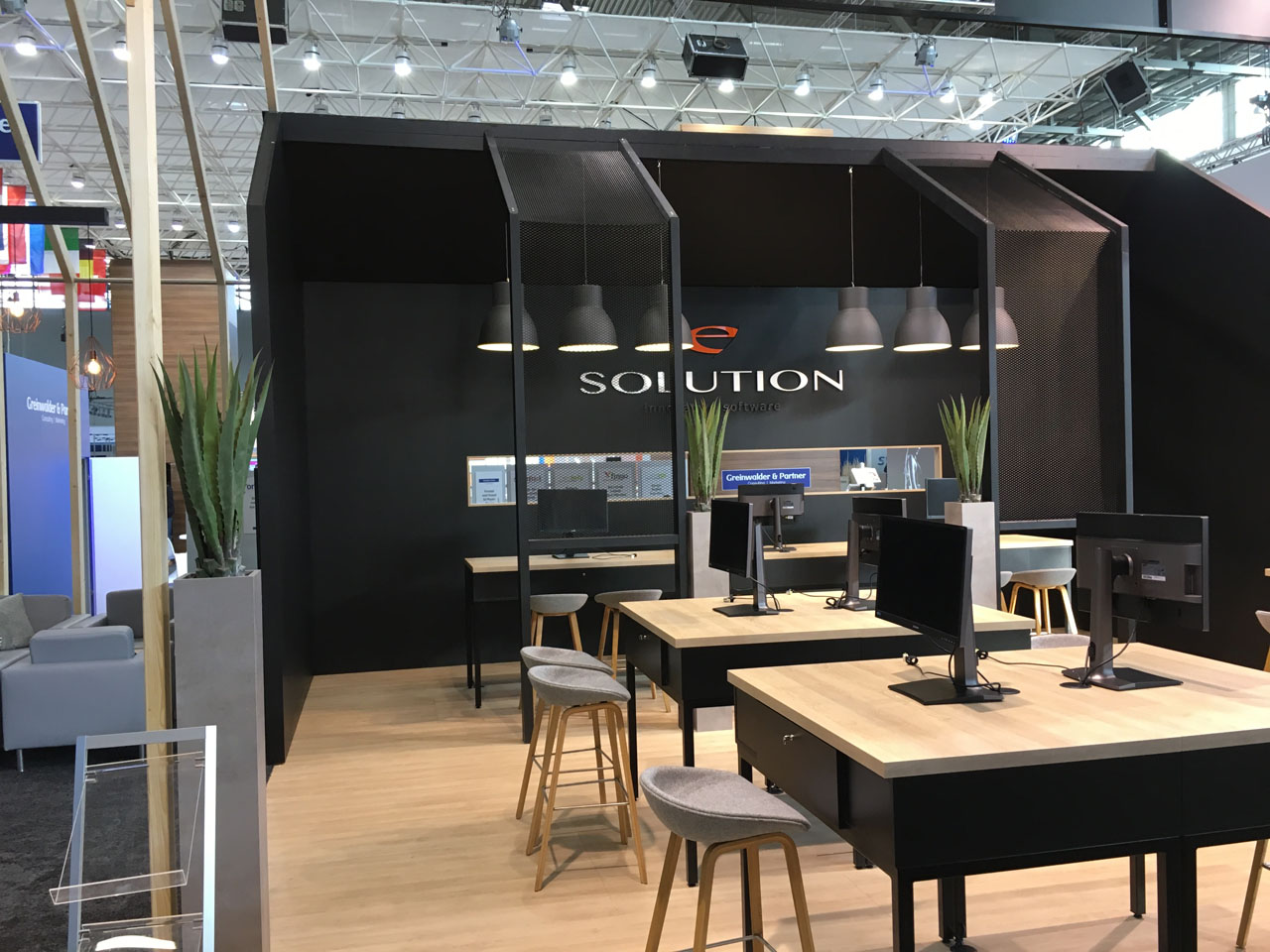 Kein 0815, sondern ein individuelles Messestandkonzept, das sollten wir für Easy Solution auf der Fibo in Köln realisieren. Die neu bezogenen Räumlichkeiten des Unternehmens waren für uns der gestalterische Ausgangspunkt: Abstrahierte Formen ergaben einen temporären Bauernhof mit einer geschlossenen Scheune als Lager, einem offenen PC-Hof und weiteren halboffenen Gebäuden als Besprechungs- oder Loungebereiche. Schwarzes und helles Holz stellten einen ursprünglichen Kontrast zur modernen Technik dar und sorgte für eine persönliche Note. Die Besucher der Messe erhielten so einen ganz neuen Blick auf das Unternehmen: von technisch-versiert zu persönlich-einladend.
