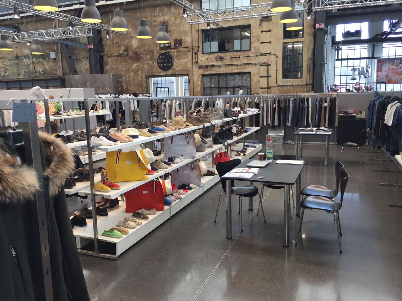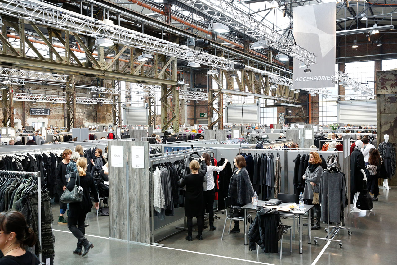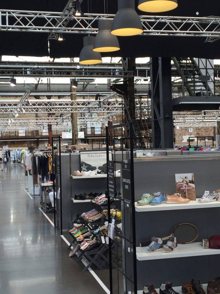 Unsere Aufgabe bei der Gallery Düsseldorf bestand darin, ein übergreifendes Messestandkonzept zu entwickeln, das sich auf die Segmente Agencies & Premium Brands, Contemporary Fashion und Accessoires bezieht. Dabei orientierten wir uns an der Mode selbst und dem industriellen Charme der Location, des Areal Böhler Düsseldorf. Das Ergebnis: Moderne Konzeptstände für die Messe, die zwar durch 1,6 Meter hohe Trennwände in Grau separiert wurden, aber auch genau dadurch Offenheit suggerierten. Abschlusselemente zur Kennzeichnung der Segmente griffen zum Teil die Formensprache der Hallenarchitektur auf wie z. B. die Industriefenster und schafften so ein harmonisches Gesamtbild.