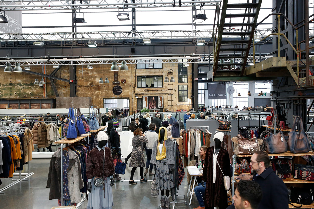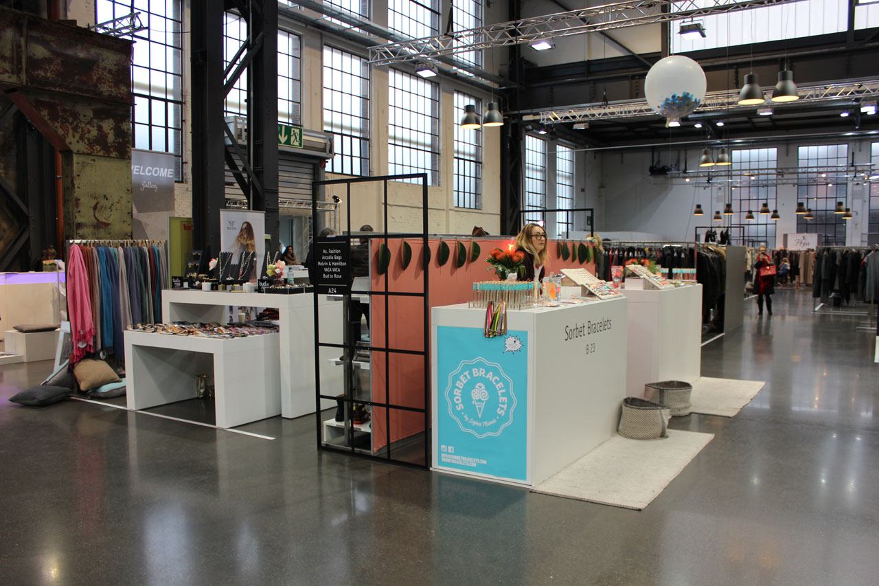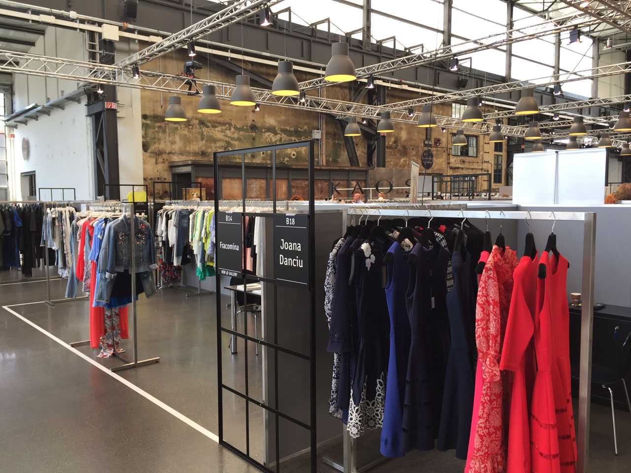 Unsere Aufgabe bei der Gallery Düsseldorf bestand darin, ein übergreifendes Messestandkonzept zu entwickeln, das sich auf die Segmente Agencies & Premium Brands, Contemporary Fashion und Accessoires bezieht. Dabei orientierten wir uns an der Mode selbst und dem industriellen Charme der Location, des Areal Böhler Düsseldorf. Das Ergebnis: Moderne Konzeptstände für die Messe, die zwar durch 1,6 Meter hohe Trennwände in Grau separiert wurden, aber auch genau dadurch Offenheit suggerierten. Abschlusselemente zur Kennzeichnung der Segmente griffen zum Teil die Formensprache der Hallenarchitektur auf wie z. B. die Industriefenster und schafften so ein harmonisches Gesamtbild.