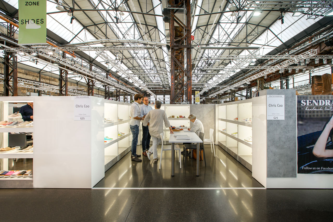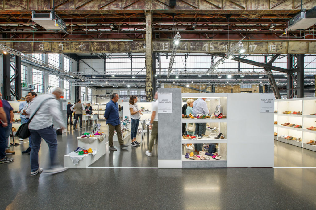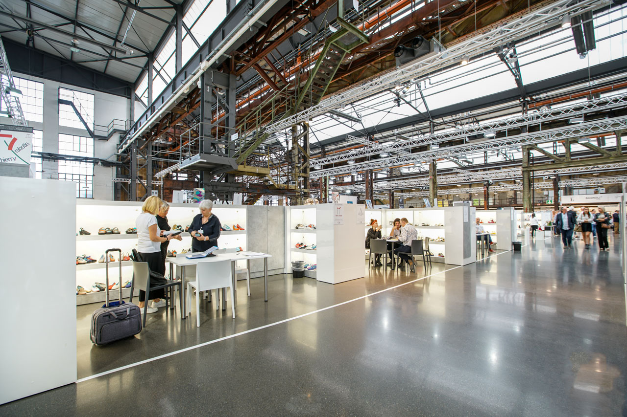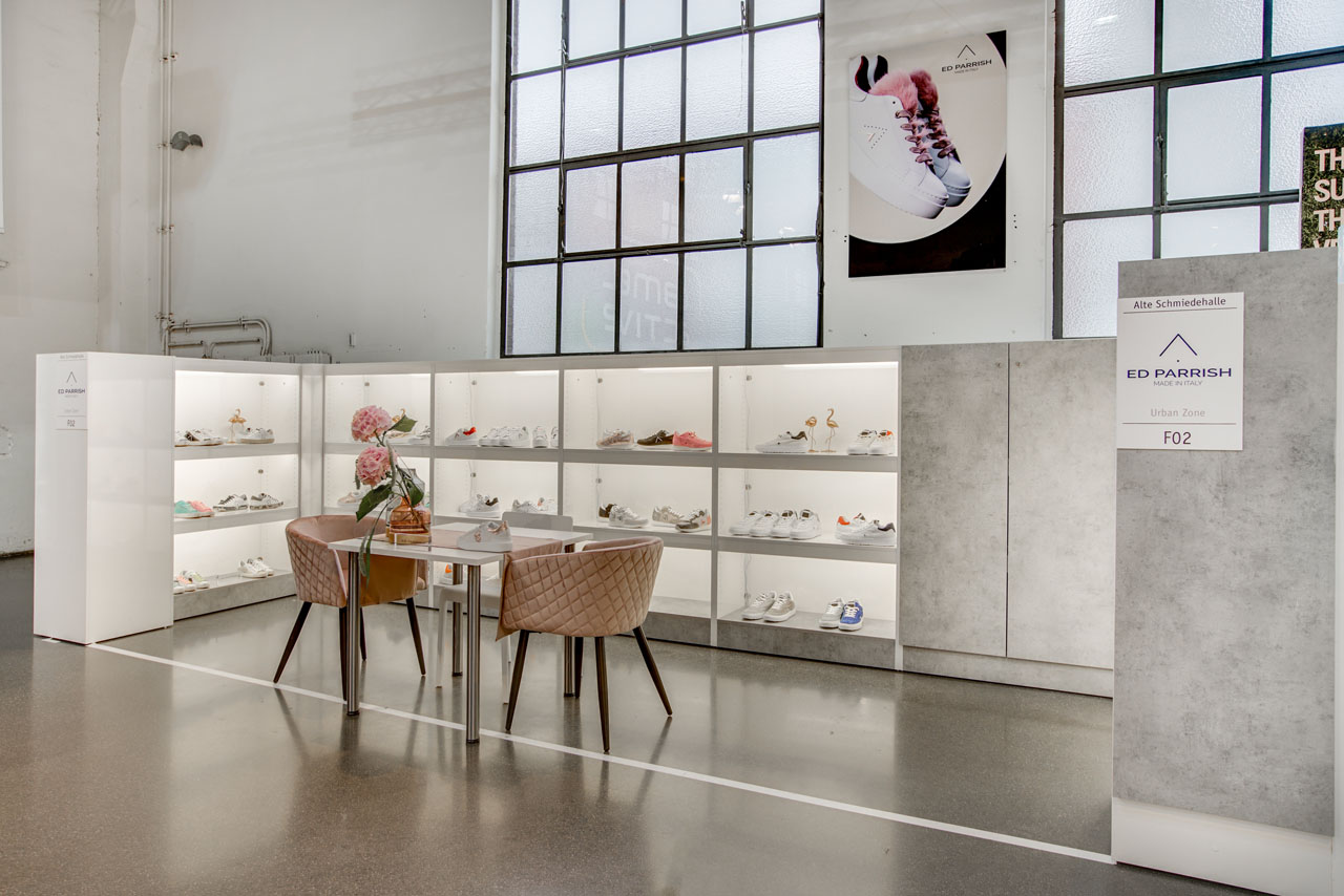 Abseits von fertigen Standbau-Systemen, entwarfen wir für die Gallery SHOES hochwertige Messestände, die einerseits den Industriecharme der Location zur Geltung brachten, andererseits die Modekollektionen perfekt inszenierten. 1,6 Meter hohe Trennwände ermöglichten den Rundumblick über die Modemesse und öffneten dadurch optisch die einzelnen Stände. Die offene Gestaltung sorgte für eine moderne, aber atmosphärische Stimmung, die die neuen Schuh- und Accessoire-Kollektionen perfekt inszenierte. Außerdem betreuten wir vor Ort Aussteller in allen Belangen bezüglich der Stände und lösten vor Ort eventuelle Probleme.